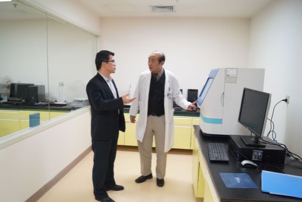 何国伟首先对韩军一行的到来表示热烈欢迎,然后介绍了天津泰达国际心血管病医院的基本情况,并重点介绍了医院研究所的管理制度、结构布局、仪器设备、实验中心及目前开展的科研项目研究情况。随后,韩军介绍了皖南医学院基本概况以及我院的师资队伍建设、人才培养水平、科学研究等情况。双方就课题联合申报、青年教师联合培养、学术交流等方面达成初步合作意向。最后,何教授带领大家参观了正在开展的研究项目。