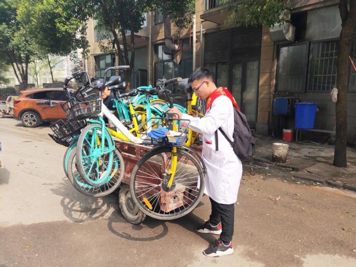 清洁脏垢散春光,归整单车暖心肠。志愿者们在儒林西苑开展了公益清洁和归整共享单车活动。志愿者们分工合作、互帮互助,对社区周围道路进行全面清扫与整理。朝气蓬勃的我院学子,发扬不怕脏不怕累的精神,将周边街道打扫得干净整洁,将共享单车整理的整整齐齐。志愿者们用实际行动为创建美好社区环境奉献了一份力量。