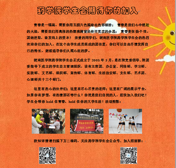 金秋送爽,丹桂飘香,随着一批风华正茂的大一新生加入,馨香校园更显生机盎然。为助力团学工作扎实开展,我院团委学生会于2016年9月上旬开展了团学组织2016年招新工作。