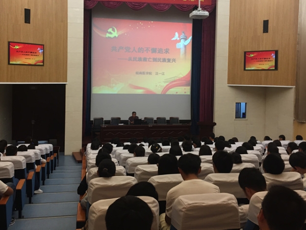 为了更好地指导当代大学生“学党史、知党情、共筑中国梦”,让同学们确立自己的信仰,正确开创未来道路的方向,9月22日下午在逸夫楼一楼报告厅,我院和关工委联合举办了“共产党人的不懈追求——从民族灭亡到民族复兴”主题讲座,该讲座由马克思主义学院汪一江教授主讲,我院2016级新生到场聆听。