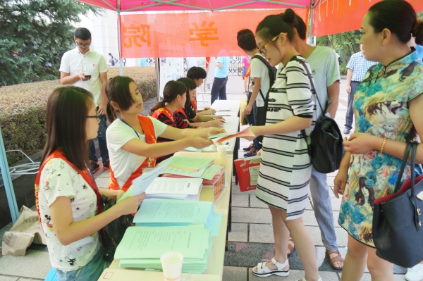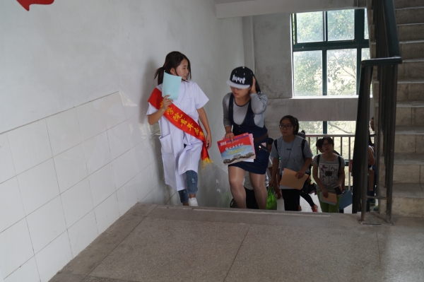 迎新当天,我院迎新服务队的同学,肩披志愿者佩戴,身穿统一的衣服,活跃在迎新现场的每个角落。整个迎新过程中,我院始终坚持“以生为本”的理念,采取“一条龙服务、一对一帮助”的措施。新生报道时,便由我院迎新志愿者进行陪同,并全程协助新生完成报到注册、钥匙领取、校园卡发放等各个流程。同时,学院组建爱心车队,帮助新生家长搬运行李;成立党员服务站,发挥共产党员的先锋模范作用;设置咨询台,热情耐心地解答学生和家长疑问;向每位新生及家长发放《新生入住须知》、《致新生家长的一封信》、《新生安全知识宣传》等,对新生入学进行温馨提示等。此外,我院还在迎新现场设置饮水点、绿色通道、家长休息室等专项服务点,为新生和家长提供人性化服务。
