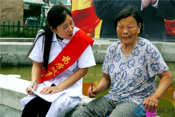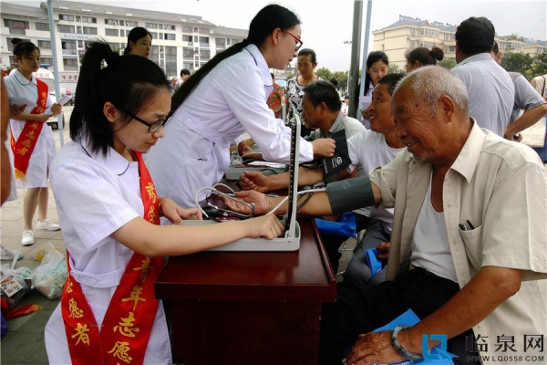 7月5日,服务队来到临泉县姜子牙文化广场,组织开展爱心义诊活动,队员们充分利用自己在学校学习到的专业知识,为过往的行人免费测量血压、宣传医学知识、提供健康咨询等。让广大人民群众了解了自身的血压状况,普及了健康知识与技能,促进人们自觉关注身体健康,采纳有益的生活方式,降低或消除危险因素,积极预防疾病,同学们热情周到的服务和无微不至的关怀得到了大家的一致好评。