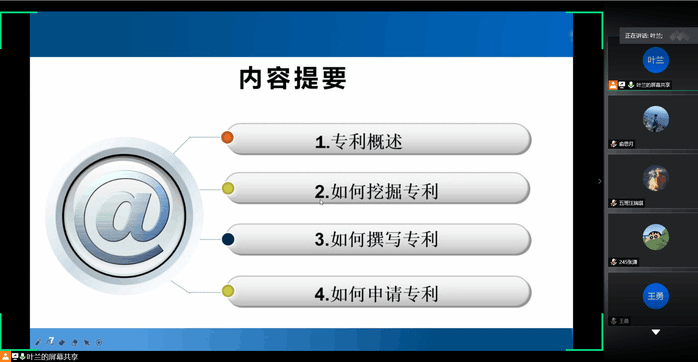 为提高我院2019级学生的专利创新意识,培养大学生实践和创新能力,引导大学生关注知识产权相关内容,6月28日下午,我院学生第二党支部邀请学生第四党支部书记叶兰老师开展专利知识线上讲座。