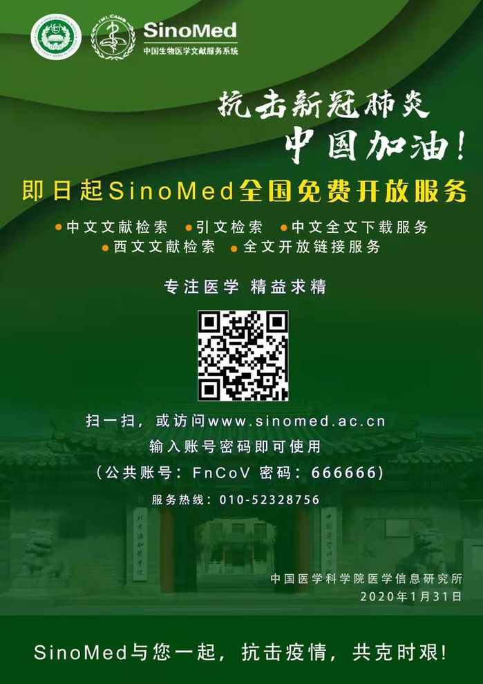 中国加油,中国生物医学文献服务系统SinoMed与您一起抗击疫情,共克时艰!