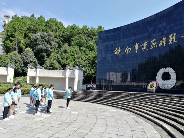 7月10日,在我院党委副书记王颖的带领下,我院“红色筑梦”之旅30名同学走进泾县皖南事变烈士陵园,重温红色记忆。在园区内,同学们参观了位于神道两侧记载着当年感人事件的石刻雕塑,仔细体味并感悟英烈们的爱国情怀和大无畏精神。在主碑纪念广场,同学们自发默哀三分钟,表达对革命将士们为国捐躯的深深敬意和悲痛之情,随后同学们将寓意无尽哀思的菊花轻轻的放在了烈士纪念碑前。在皖南事变史料陈列室,同学们仔细参观了英烈们的生前遗物,阅读了相关史实资料,更加深入的了解了皖南事变那一段悲壮的历史岁月,被可歌可泣的革命事迹所震撼。