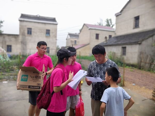 送医药知识下乡,助力居民卫生习惯养成。为提高广大群众预防夏季常见传染病意识,7月6日清早,队员们冒着雨一家一户走访,通过现场讲解、发放宣传单等形式,向当地贫困户们宣传手足口病、细菌或病毒性腹泻病、流行性腮腺炎等疾病的预防知识以及家中应常备药品和常用药品服用的注意事项,帮助居民形成良好的的卫生行为习惯理念和意识。