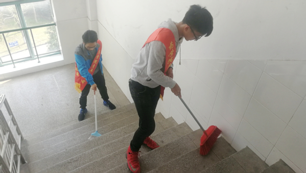 美化校园环境,筑青年爱校之魂。为营造良好的学习生活环境,展现青年学生爱校、护校、为校之情。五四前夕,我院2017级团总支组织15名同学开展了“争当五四好青年,义务清扫校园”活动。在1号教学楼,同学们或擦拭校园栏杆、墙面,或清扫走廊、楼梯,一时间,一股浓浓的爱校、护校情谊激荡在心中。