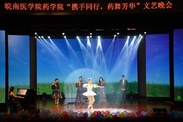 晚会开始前,精心制作的《热血药学》暖场视频顿时令现场气氛升温。气势磅礴的开场舞《春满芳华》在璀璨的灯光,绚丽的舞台上完美绽放,瞬间点燃现场;歌曲联唱《穿越时空的合唱》将京剧与现代歌曲完美联动,带领观众穿梭古今,共鸣人生相遇;婀娜多姿的古典舞《无归•千古》以舞者曼妙悠美的舞姿,将古风古韵的中华文明完美展现;热情似火的拉丁舞《如火年华》,动感奔放的爵士舞《My style》、《炫舞青春》以抢眼的舞姿,紧凑的舞步,热情奔放的舞态展现了药学学子的青春与热情;而器乐朗诵伴舞《卡农·天鹅湖》则将悠扬的乐曲、激昂的朗诵、优雅的舞步完美融合,带领观众步入了艺术的殿堂;相声《考研和工作》以幽默诙谐的语言演绎了踌躇抉择的青春岁月和药学人青春激扬,直面未来的精神风貌;歌曲联唱《闺蜜》、《成长》,创意节目手影舞《遇见》,则以不同形式讲述了同学们相遇皖医,共同成长,温情互助的同窗岁月。晚会在我院老师们的合唱《我们的青春》中顺利落下帷幕。穿插在晚会中的抽奖互动环节,一次次将现场气氛推向高潮。