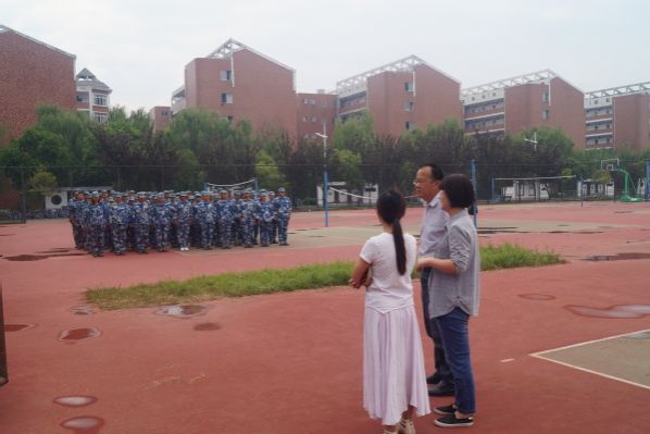 为更好的了解新生的军训状态,关心新生的军训生活,9月18日,我院党委书记李康才、副书记王颖、辅导员叶兰、王会四人来到我院新生军训场地,观看了新生的军训练习。军训场地上,同学们斗志昂扬,朝气蓬勃,在教官的指挥下,反复操练着齐步走、正步走、齐步变正步等基本的动作。每一次踏步都是铿锵有力,展现出我院2017级新生饱满的热情和活力。 院领导和老师在观看新生训练的同时,也在新生休息期间给予其鼓励和关怀,希望新生在军训期间能够严格遵守教官指示,努力训练,磨砺自己的意志,并将这种状态带到未来的学习和生活中去。
