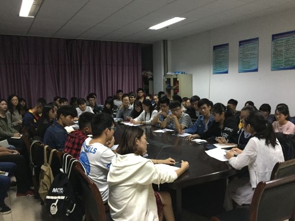全体大会迎新人,共学经验求发展。为引导新成员更好的融入团学组织大家庭,9月29日晚,我院团委学生会于学院会议室召开了第一次全体大会。会上,团委副书记王会首先对新成员的加入表示了欢迎,并从思想、学习、纪律、工作开展等方面对全体团学干部进行了培训。会后,学生会主席黄聪颖对各部门工作情况进行了介绍,并对前期工作的开展进行了总结,对下一步的工作内容进行了布置。会议的召开,明确了团学组织的工作内容,也促进了团学成员之间的感情交流。
