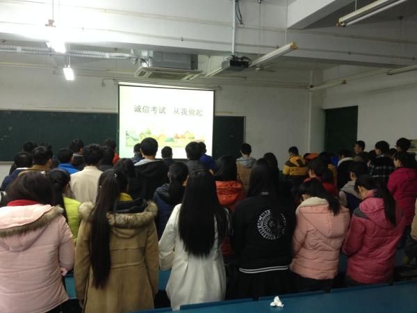 考风考纪是学风建设的重要内容和关键环节,是学生对考试认识和态度的集中反映,也是学风、校风状况的综合展示。为进一步引导学生养成良好的考风考纪,形成诚信的学习氛围,我院在新生年级中开展“诚信考试从我做起”系列教育活动,培养学生诚信考试的意识,营造公平、公正、诚实守信的考试氛围。