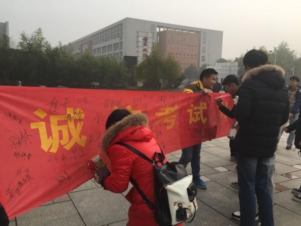 为进一步加强校园优良学风创建和学生诚信考试教育,创建优良学风、考风。12月25日中午,我院2015级团总支学生会在食堂一楼门口开展了学风建设系列活动之“诚信考试从我做起”横幅签名活动。活动中,同学们都积极响应诚信考试的号召,共同为诚信考试立下誓言,纷纷表示要以身作则,以诚信为自我要求,积极备考,拒绝作弊行为。此次诚信考试签名活动的开展,一方面,为了宣传诚信考试的重要性,增强学生诚信考试意识;另一方面,倡导学生在接下来的考试中,做好考试复习,重视诚信考试,将诚信考试意识和行为落实到日常的学习、考试中,形成诚信考试的优良学风。