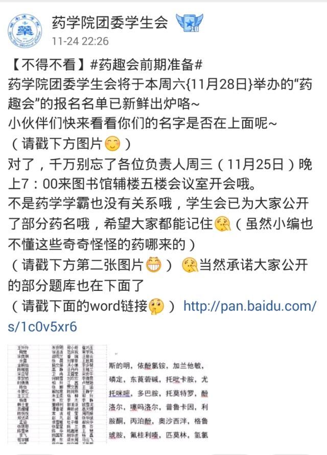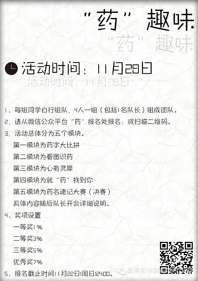 为了弘扬中华传统文化,增强同学们对中华文化的自信和认同,积极响应学校“三走”政策,丰富同学们的课余生活,增加合作交流,培养和增强对所学专业的兴趣,营造积极健康、趣味纷呈的校园文化氛围。我院团委学生会于9月28日下午举办了第一届“药乐趣”活动。