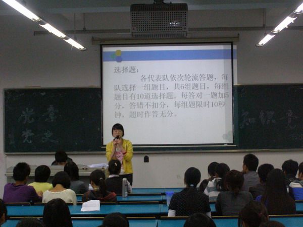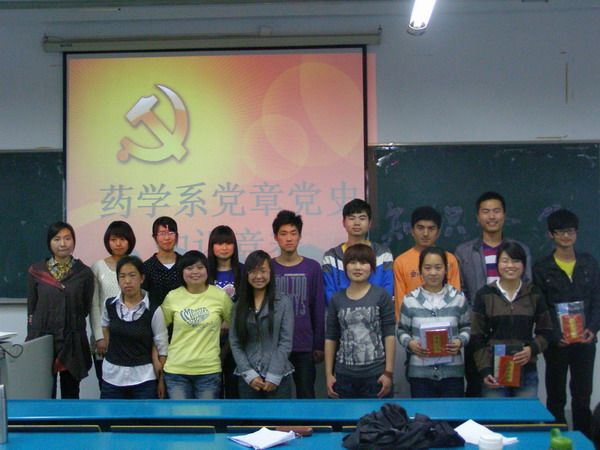 为庆祝建党90周年,促进党员和入党积极分子进一步学习党史知识暨两会精神,保持共产党员先进性,加强大学生思想政治教育,4月20日晚,药学系团委学生会在西教102举办了“党章党史知识竞赛”活动。