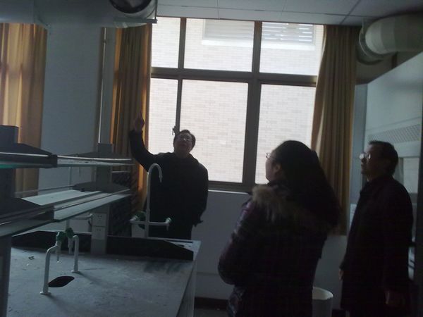 随后,吴少云主任一行又来到了系部学生实验室,在实验室通风设备改造的施工现场,吴少云主任与施工方进行了深入交谈,详细的了解和查看了施工进展情况,并对施工方反映的困难进行了现场协调。吴少云主任叮嘱施工单位要保证施工质量,及时完成实验室改造工程;同时要求实验室工作人员做好假期用水、用电和冬季三防等安全工作。