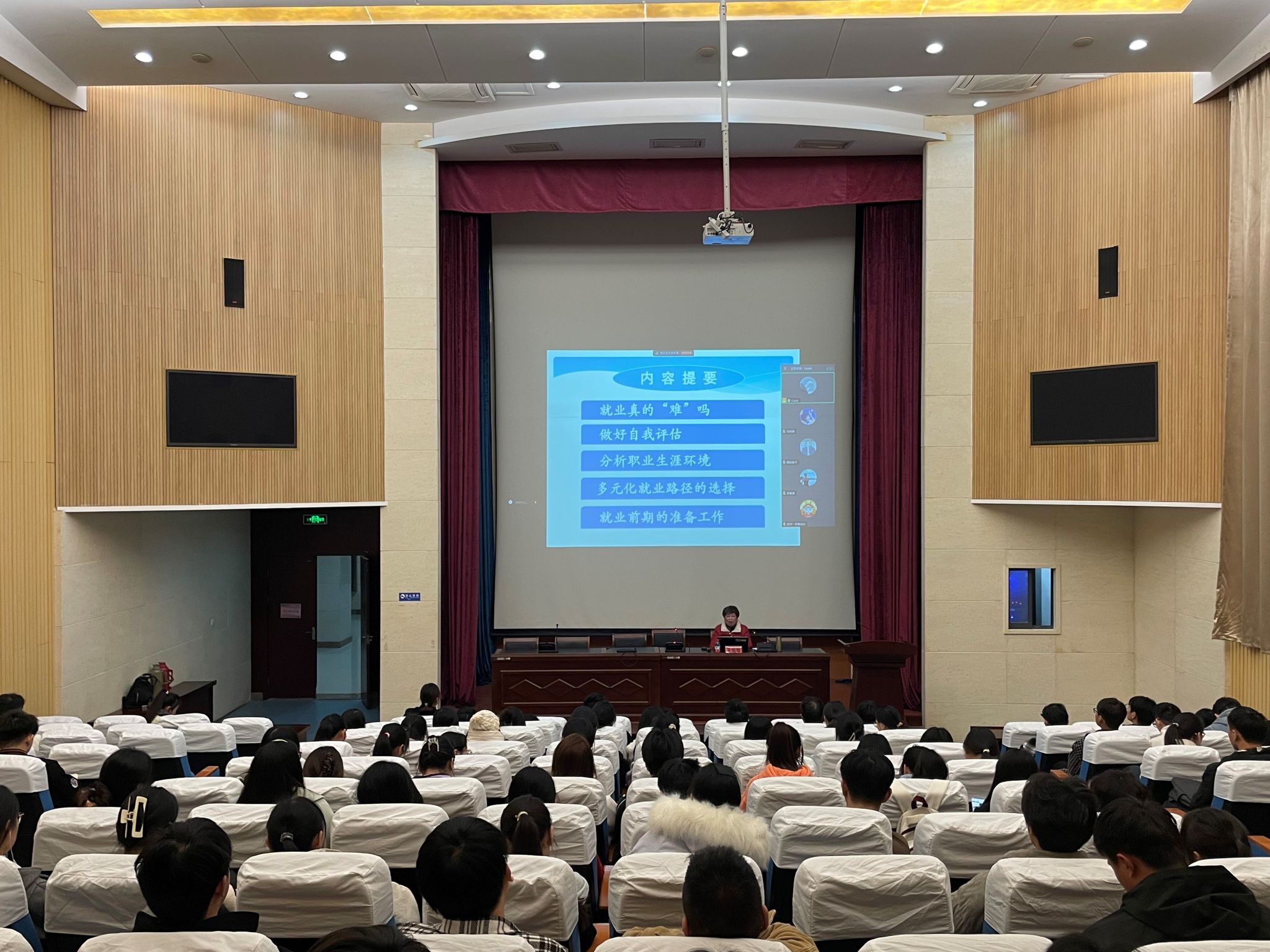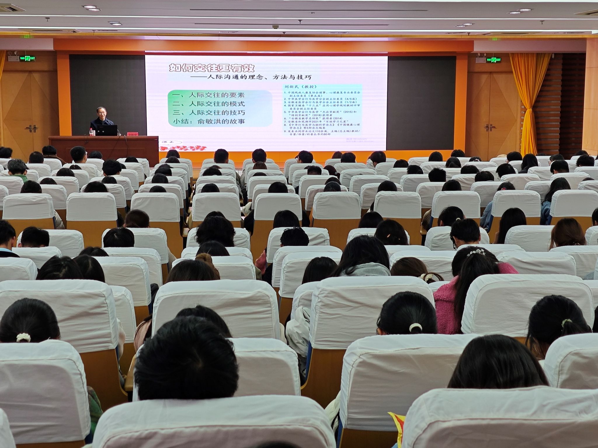 11月20日晚,我院邀请校关工委“五老”报告团刘新民、王雪琴两位老师分别为2024级、2021级学生作“大学生人际关系交往”、“‘职’向未来——就业指导·面对面”专题讲座。我院党委副书记、纪委书记吴林羽,学生工作秘书刘晓旭,辅导员王会、金鑫、唐保露参会。