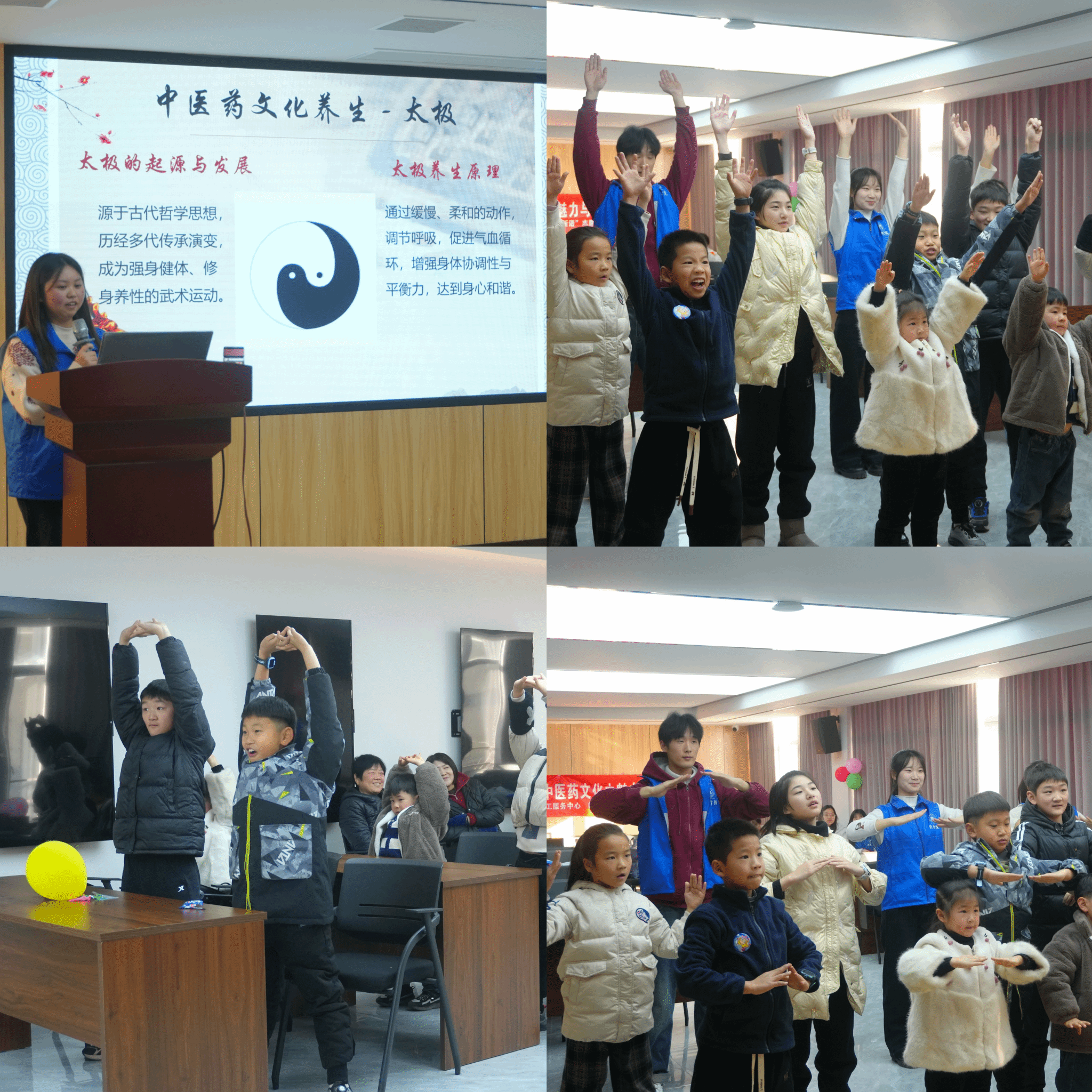 学习中医养身,助力健康生活。志愿者们详细讲解了太极、八段锦的起源、特点与功效。随后,通过播放视频和现场领操演示,将八段锦的动作逐一分解展示,从“两手托天理三焦”到“背后七颠百病消”,带领现场青少年一同学习这一中医传统养生功法,并耐心细致地为他们进行指导。在学习过程中,青少年们共同感悟八段锦独特的文化魅力,进而引导他们树立健康生活理念,培养健康生活方式。