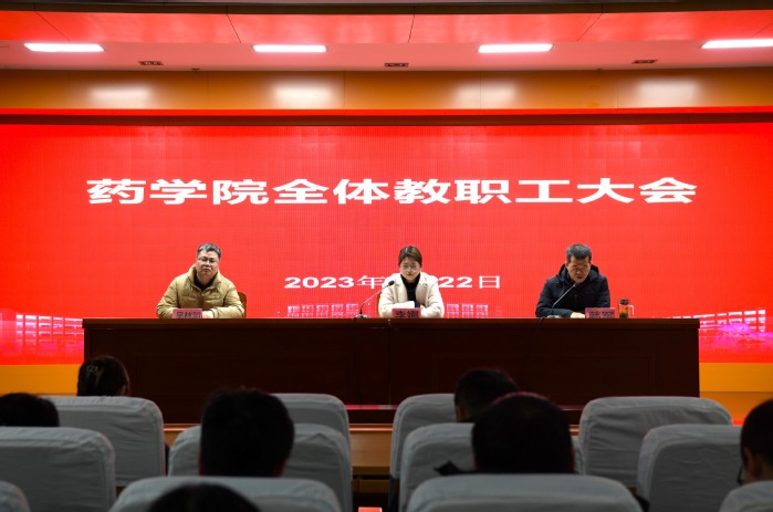 李娜对做好2023年工作提出三点要求,一要高举旗帜,以党的二十大精神凝心铸魂。要忠诚于党的教育事业,抓实抓牢教职工政治理论学习,紧密结合学校“十四五”规划目标、学院现状与自身情况,扎实推进工作。二要落实责任,以好老师的标准聚力发展。严格要求自我,担好教书育人第一责任,对教育教学改革有紧迫感、危机感,用“创新、创业、创造”的药学精神感染学生。三要重德仁爱,以学生为中心的理念言传身教。要深入推进党要管党,全面从严治党,强化师德师风建设,广大教师要守牢师德底线,不碰纪律红线,守好意识形态责任田,落实好立德树人根本任务。