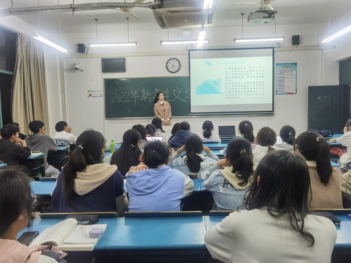 时间:2022-11-09 来源:宣传部 阅读次数:为帮助新生融入大学生活,明确职业生涯规划,找到自己的目标与奋斗方向,11月8日晚,我院举办新老生经验交流会。本次交流会邀请到9名2021级优秀学生代表为新生们解答疑惑,分享自己大学学习生活的经验,学院2022级全体新生参加了此次活动。