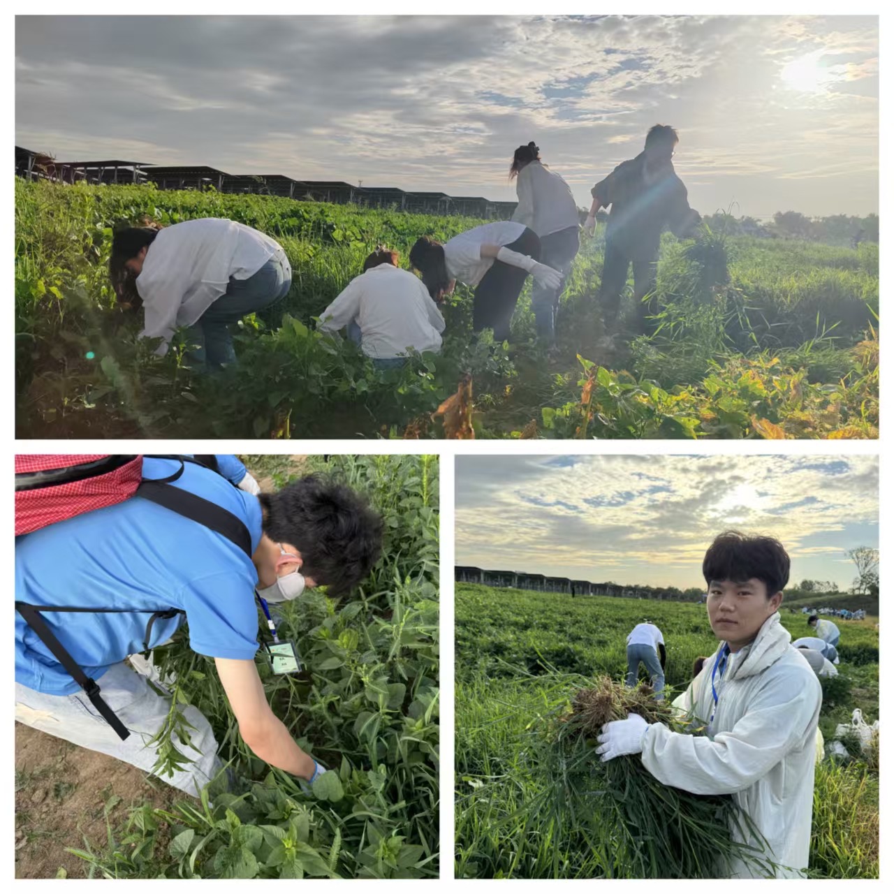 访田间地头,探产业密码。清晨,实践团队早早来到小岗村现代农业示范园,在农户指导下体验蔬菜采摘,田间除草等农耕劳作。顶着烈日,同学们挽起裤脚踏入田地,切身感受“从生疏的动作到逐渐掌握技巧,切身感受“一粥一饭,当思来处不易”。在小岗村现代农业示范园,技术员的介绍让队员们眼前一亮。“从‘大包干’到‘现代农业’,小岗村的改革从未停止,这让我们看到了乡村振兴的活力源泉。”实践队队员在调研汇报中感慨道。