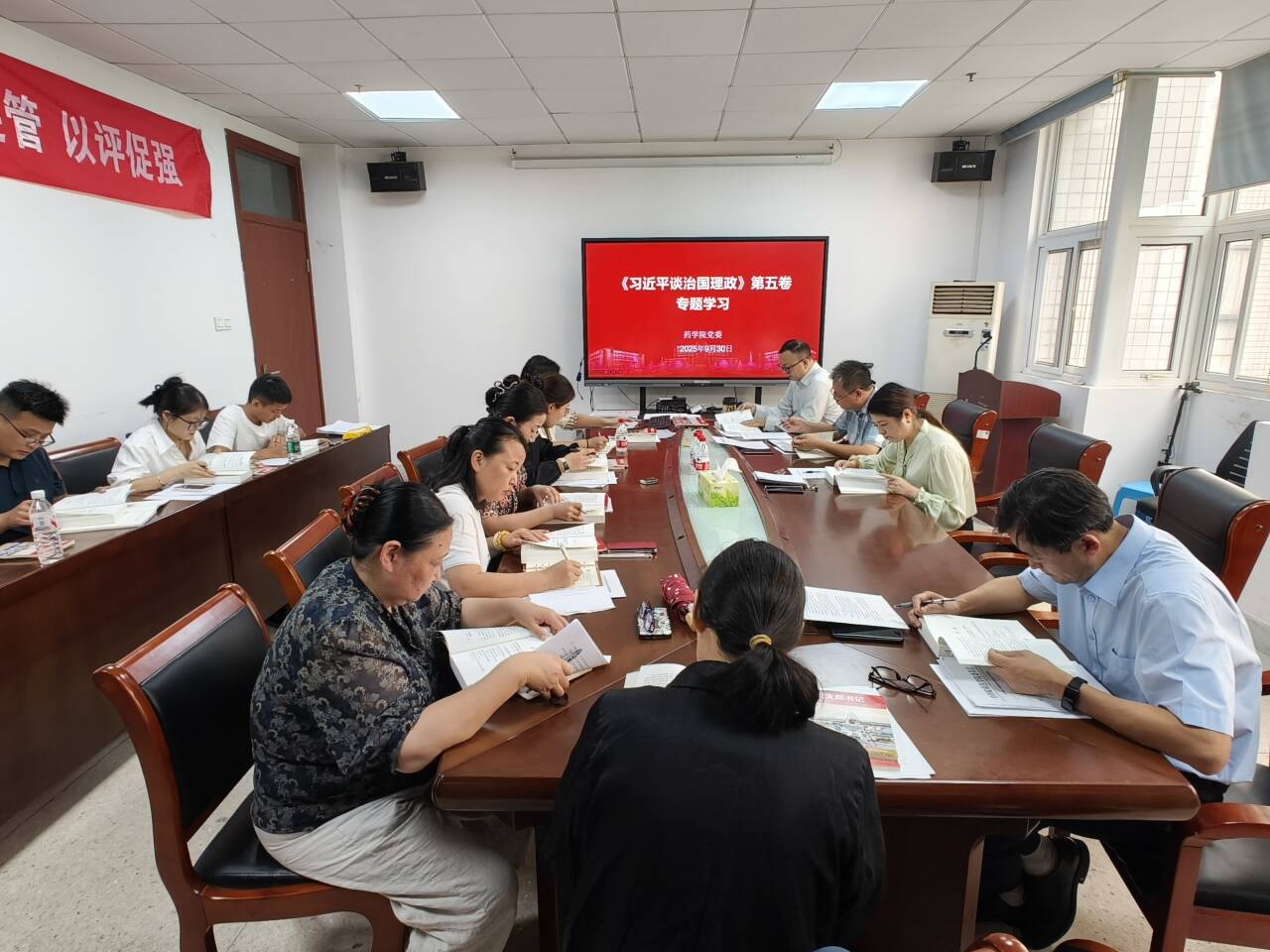 为深入学习贯彻习近平新时代中国特色社会主义思想,9月30日,我院党委理论学习中心组开展专题学习会,集中学习《习近平谈治国理政》第五卷部分内容,并围绕相关主题进行研讨。学院党委委员、党支部书记参会。