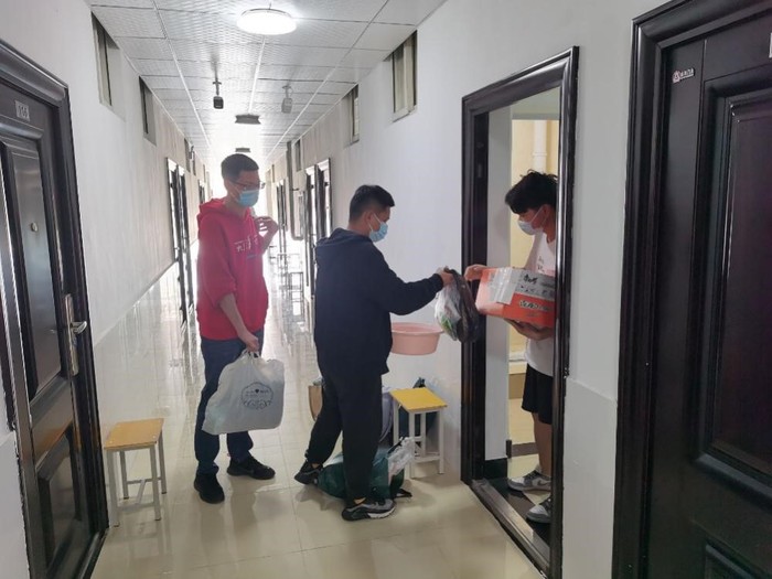 关爱服务暖人心。因疫情防控要求,夏瀛校区采取封闭管理,学院辅导员负责收集用药、生活物资等需求信息,在校值班值守老师采取送政审材料上门、送生活物资上门、送运动器材上门等方式主动服务,缓解学生焦虑情绪。学工队伍每日往返滨江和夏瀛校区,将每一份材料、物资送到学生手里,其中韩军还护送多名学生前往医院就诊,吴林羽在夏瀛校区开展志愿服务给学生进行每日核酸检测等。