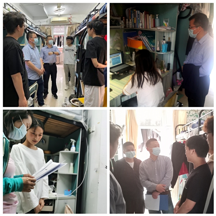 齐心协力保稳定。自4月17日学校封闭管理后,面对学院学工队伍只有2人在校内,而在校学生约2000人的现状,学院党委副书记、院长韩军立即召开在校教师疫情防控会,要求在校内住宿的8名专职教师也加入到学工队伍来,两两分组对我院4个年级学生实行包保责任制,并下沉到学生宿舍,查看学生线上上课等学习情况;了解学生的思想动态,帮助学生解决学习与生活困难等。我院在校教师郑咏秋研究员、周璐坦博士、侯雪峰博士、宋孝君博士、陈颖、陶灿、张袁祥、张会宁、吕业超、唐保露等均积极参与到校内抗疫工作,深入到学生宿舍,做好学生思想工作,充当志愿者配合学校对学生开展每日核酸检测,确保校园安全稳定。