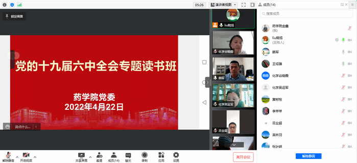 时间:2022-04-25 来源:宣传部 阅读次数:4月22日,我院党委通过腾讯会议召开线上中心组学习(扩大会)暨学习党的十九届六中全会精神专题读书班,学院党委副书记、院长韩军,党委副书记吴林羽,在芜党委委员、支部书记参加会议。会议由韩军主持。