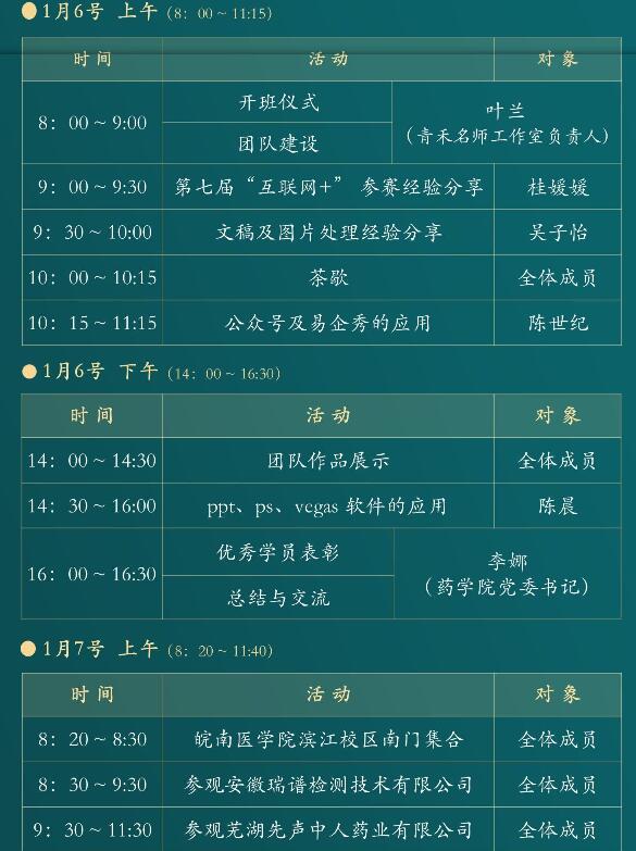 为积极探索顺应时代需求的创新创业教学形式,进一步增强同学们对创新创业的了解度和参与度,培养学生创新创业意识和思维,传承我院“创新、创业、创造”理念,1月6-7日,“青禾”创新创业名师工作室成功开展第一期创新创业训练营,此次训练营设置分为四大板块,分别为团队建设、技能提升、展示汇报、实践参观。