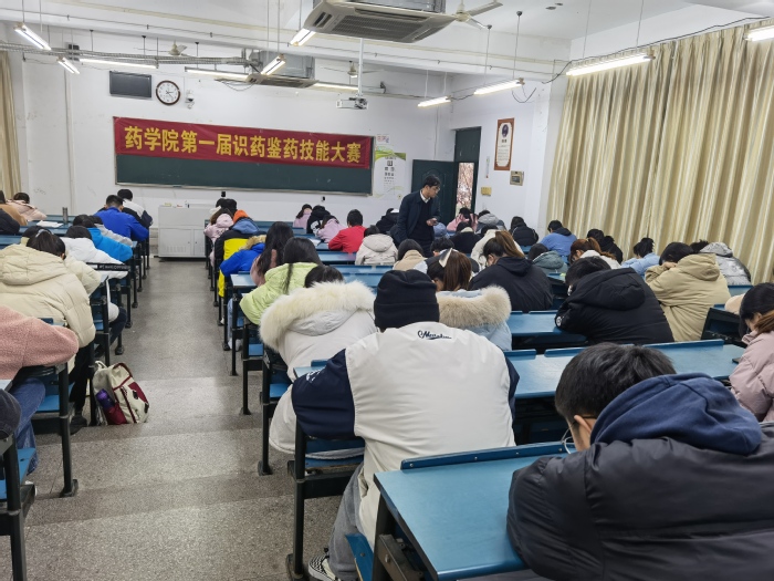 为彰显中药学专业特色,提高学生专业技术能力,我院于12月16日、17日举办了第一届识药鉴药技能大赛。安徽中医药高等专科学校药学系主任赵宝林教授、我院生药学教研室包淑云副教授等5位专业课教师担任大赛评委,教务处副处长、中药鉴定学课程负责人年四辉教授莅临比赛现场。