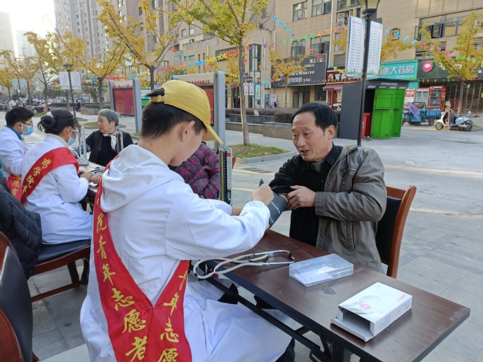 奉献之心励志于行,义诊之意服务于人。上午八点半,我院志愿者集体到达儒林西苑,向社区综合服务中心借取椅子及桌子,检查摆放好测量仪器,提供测血压以及按摩服务。活动过程中,志愿者们耐心对待前来咨询健康方面问题的居民,并给予他们详细的回答,同时,也根据其血压情况提出进行适量运动、少熬夜等合理的建议。志愿者们也帮助身体酸痛的居民们进行按摩放松服务。此次义诊活动得到无数社区居民的夸赞,有利于培养我院学子服务他人的精神。