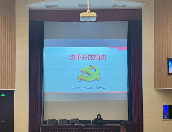 百年征程波澜壮阔,改革开放历久弥新。邓会敏副教授从改革开放简史的角度切入,围绕伟大转折及前奏、改革开放前的重要准备、探索有中国特色的社会主义道路、中国特色的社会主义道路越走越宽阔等内容重点讲述了改革开放以来中国发展的艰难而光辉的历史,深入解读了改革开放史对于我们在新时代实现强国梦的重要意义,在讲座中,邓会敏副教授号召同学们不负青春年华,勇担时代重任。