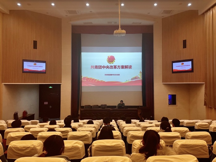 团结共创盛世中华,改革铸就光辉未来。我院团委书记吕业超作了题为《共青团中央改革方案解读》的讲座,讲座从共青团中央改革背景及意义、改革主要措施、改革将带来哪些变化及如何有序推进共青团改革等四个方面进行深度阐述。此外,吕老师还向同学们介绍了我院团委学生会的组成部门及其工作内容,鼓励同学们积极参加校园活动,以丰富自己的大学生活。