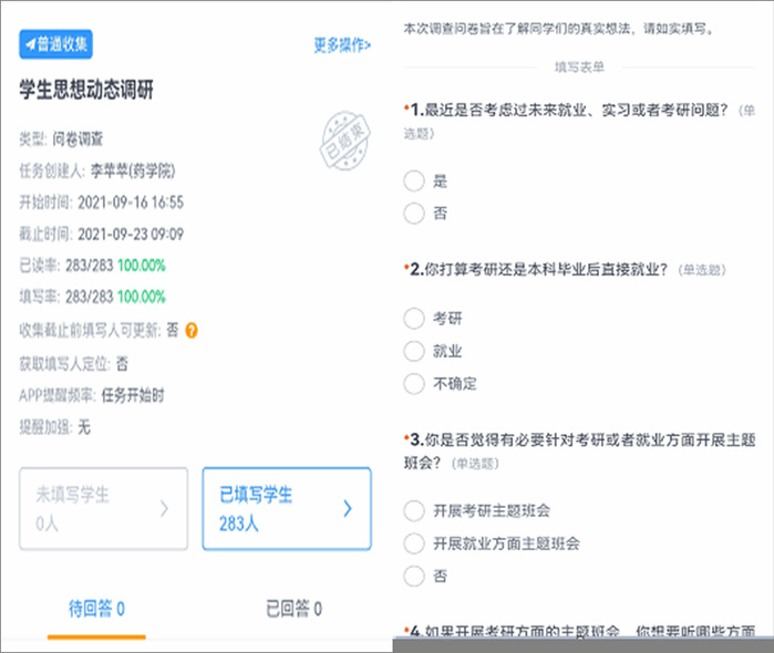 全面调研,深入了解学生需求。为深入了解学生所思所想,我院学生第二党支部通过个别谈话、学生座谈会以及网络调研的形式深入了解2019级学生思想动态,调研结果显示,94%的学生对考研、就业等问题存在困惑,其中有87%的同学有考研意愿,并希望就如何确定考研学校和方向、如何获取考研资料等方面进行答疑解惑。