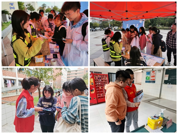 一是开展志愿活动,筑牢思想防线。10月12日至10月18日,学生第二党支部联合高教园区派出所开展了为期一周的 “全民反诈,药我同行”反诈骗主题宣传活动,同时成立了志愿者队伍,为学生发放了反诈宣传折页,提醒同学们及时关注国家反诈中心APP和视频号。志愿者们结合最新案例,为同学们详细讲解代购诈骗、刷单消费诈骗等常见的诈骗手段,普及网络安全知识、金融知识,提醒同学们要牢记“三个一律”和“八个凡是”,守住“钱袋子”,自觉远离和抵制传销。
